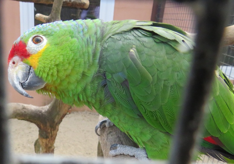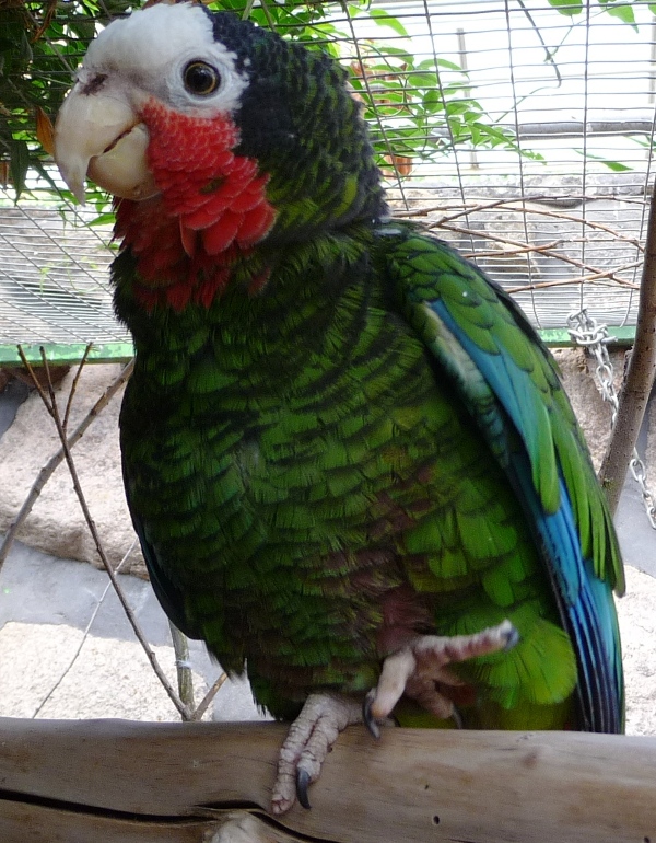 Ihr Gefieder ist überwiegend grün gefärbt, mit roten, gelben