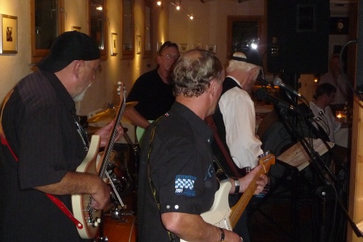 Wißt Ihr, wo Lutzhorn ist? Nein? Wir haben es auch nicht so richtig gewußt... und hätten wir kein Navi dabeigehabt, hätten wir diesen kleinen Ort wohl sicher nicht gefunden. ![]() Mitten im Grünen... versteckt zwischen hohen Maisfeldern... in vollkommener, erholsamer Stille... - da liegt der "Tannenhof Bornholdt", wo wir heute zum 40. Hochzeitstag von Anngret und Dieter Ballerstädt spielen sollen. Der Inhaber des Tannenhofes begrüßt uns und zeigt uns die Räumlichkeit, in der wir unser Equipement aufstellen werden. Heute ist ein drückendheißer Tag. Doch im Inneren der ehemaligen großen Bauernhof-Diele ist es angenehm kühl. ![]() Etwas eingeengt durch einen großen, alten, nostalgischen, schwarzen Ofen (der im Winter sogar noch in Betrieb genommen wird, wie uns gesagt wurde), bauen wir unsere Anlage auf. Der ganze große Raum ist wunderbar heimelig und rustikal eingerichtet. In der Tür zu den Toiletten befindet sich sogar ein ausgesägtes Herz... Beim Soundcheck müssen wir den Lautstärkeregler natürlich um einiges herunterziehen. Aber das macht uns nichts aus. Die Hauptsache ist doch, daß der Sound stimmt. Eumel braucht diesmal keine Mikrophone zum Abnehmen... nicht einmal einen Monitor. ![]() Als wir fertig sind, setzen wir uns an einen der Tische auf dem Dielen-Vorplatz und lassen uns ein kühles Bierchen schmecken. ![]() Am Nebentisch haben sich die ersten Gäste niedergelassen. Die 2 Pärchen kommen aus Bayern und reden fröhlich in ihrer Mundart herum. Ich verstehe fast gar nichts von ihren Dialogen. Aber es sind sympathische, lustige Leute - und nach kurzer Zeit wir kommen wir ins Gespräch... so gut es geht.... (Böhner kann die Vier allerdings sehr gut verstehen.) ![]() Wißt Ihr, was z.B. "Duttnkraxn" bedeutet? (Ich weiß jetzt nicht, ob ich es richtig geschrieben habe...) Das ist schlicht und einfach ein B.H.. Wir haben viel gelacht... Wir werden heute hier übernachten. Erst haben wir die Heuherberge, die hier auf dem Tannenhof angeboten wird, ins Auge gefaßt... uns letztendlich aber für eine Ferienwohnung entschieden, weil Henner und Kalli das mit ihrer Allergie wohl nicht abgekonnt hätten. Und das war ein guter Entschluß. Die Zimmer sind gut und sauber. Ab etwa 19 Uhr trudeln die Gäste ein. Wir freuen uns, Magda und Jürgen Kirndörfer wiederzusehen, für die wir bereits am 1. Mai 2008 zur deren Silberhochzeit Musik gemacht haben, und begrüßen sie herzlich. Es wird Sekt und Orangensaft serviert... Gratulationen ausgesprochen... Geschenke gereicht... und dann wird zu Tisch gebeten. Das Büffet ist reichlich mit allerlei leckeren Sachen bestückt - und draußen auf dem Grill brutzeln Würste, Steaks und Putenbrust - sowie Rosmarin-Kartoffeln und Schafskäse. Um 20 Uhr fangen wir an zu spielen. Wir machen nur kurze Sets von jeweils 5 oder 6 Stücken. ![]() Obwohl es in dem großen Raum relativ kühl ist... die Luftfeuchtigkeit ist heute dermaßen hoch, daß wir in Nullkommanichts durchgeschwitzt sind. Kalli hat nach kurzer Zeit keinen trockenen Faden mehr am Leib - und seine Haare sehen aus, als ob er gerade aus der Dusche gekommen ist. Von Anfang an wird getanzt. Bei dem Song "Bye bye love..." läuft Herr Ballerstädt kreuz und quer durch den Saal und sucht seine Frau, um mit ihr zu tanzen. Er findet sie nicht und wird langsam etwas ungeduldig. Das sieht man seiner Miene an... Das Stück ist zu Ende - und da kommt sie.... wunderschön in ihrem alten Brautkleid, das sie 40 Jahre lang gehütet und gepflegt hat. (Sie ist so beneidenswert schlank und paßt da immer noch rein.) ![]() Sie strahlt glücklich... ihr Mann nimmt sie in seine Arme... und sie tanzen selbstvergessen nach unserem "Back to Paris...". Andere Paare gesellen sich dazu - und bald ist die Tanzfläche voll. ![]() ![]() Das nächste Highlight erscheint um 21.15 Uhr. Selbstverständlich haben wir vorher davon gewußt. Ein Taxi fährt vor - und er steigt aus: Mister Tony Sheridan. Dieter (so darf ich Herrn Ballerstädt inzwischen nennen) und ich empfangen ihn. Keiner hat etwas davon geahnt, nicht einmal Anngret, Dieter´s Frau.... also eine Riesen-Überraschung für alle. Wir spielen noch eine Runde, bis Tony sich etwas aklimatisiert hat und bereit für seinen Auftritt ist. Dieter sagt den Ehrengast gekonnt und professionell an. Ich verlasse die Bühne und überlasse mein Mikrophon Tony. Kalli verkabelt Tony´s Gitarre - und dann geht´s los... ![]() Die Gäste stehen und schauen.... sie staunen und klatschen begeistert, wenn ein Stück zu Ende ist. Dieser alte Musiker hat einfach Musik im Blut. Man spürt es... man sieht es... man hört es... Er geht in der Musik auf. ![]() ![]() "Meine Jungs" gehen voll auf ihn ein. Sie achten auf Tony... auf seine Körpersprache... reagieren sofort, wenn er nickt oder den Kopf senkt... werden leise... dann wieder laut... ![]() Kalli und Tony... wie ein eingespieltes Team. Sie spielen sich gegenseitig die Soli in die Hand... ich sehe es an ihren Mienen: sie sind beide voneinander begeistert... sie stehen einander gegenüber und duellieren sich mit ihren Gitarrenparts. Trotz der Hitze läuft es mir kalt den Rücken herunter..... ![]() ![]() ![]() Dann die alten Gassenhauer "Skinny Minny" und "My Bonnie". Die Gäste singen die Stücke mit leidenschaftlicher Inbrunst mit. Und ich fotografiere.... ein Bild nach dem anderen... ![]() ![]() Dann ein Blues..... Tony gibt den Ton an. Er spielt wunderschöne, einfühlsame Gitarrenparts... unterstützt von Kalli, Henner und Eumel. Böhner hat sich inzwischen meine Klanghölzer geschnappt und läßt sie gefühlvoll erklingen. ![]() Das Stück zieht sich in die Länge. Bei einem Blues ist das völlig normal. 10 Minuten.... 15 Minuten.... die 3 Akkorde der freien Interpretationen wiederholen sich ständig... 20 Minuten.... so langsam sollte man doch mal zum Schluß kommen... ![]() "Meine Jungs" sind völlig fertig - machen aber tapfer weiter... Tony geht auf in der Musik. Er hat die Augen geschlossen und spielt mit verzüc